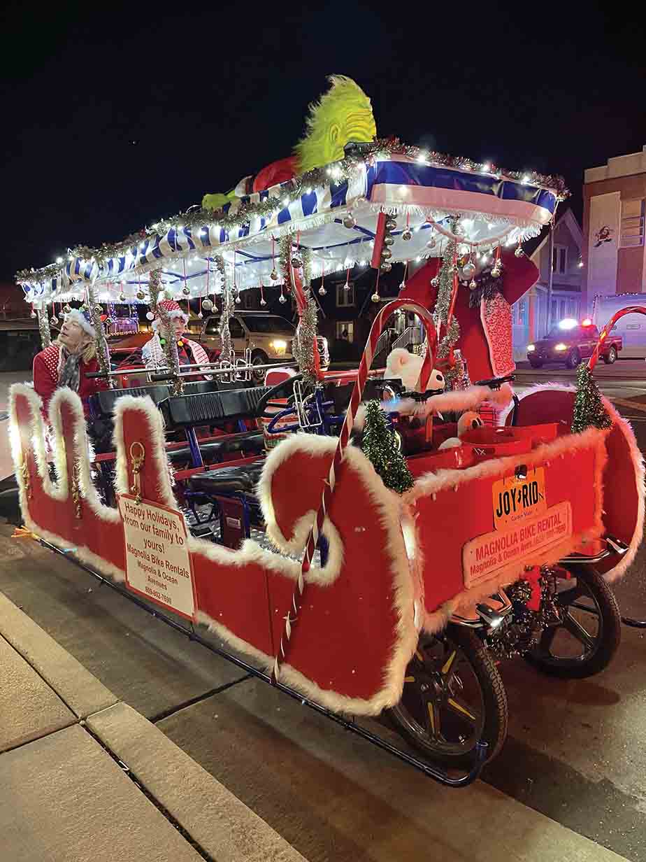 When it came time to create floats for the 2024 Wildwood Christmas Parade, Charles Eyster of Magnolia Bikes knew he wanted something special. His first idea was to build replicas of the island’s iconic lifeguard boats—but space and structural challenges quickly sank that plan. Instead, inspiration struck closer to home: Wildwood’s beloved sightseeing boats of yesteryear.